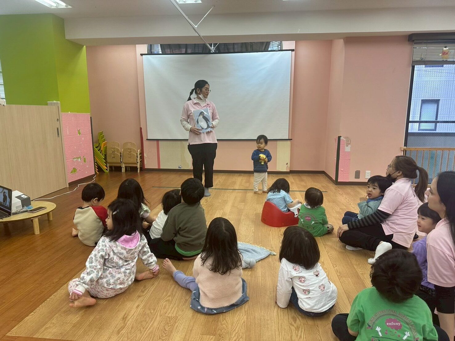 Story TimeThe Story is about “From Head to Toe”Waiting for circle time to start.Everybodys enjoying Circle time.Small kids holding hands together.Afternoon play timeThey are all Smiling while doing circle timeSmall kids enjoyed playing.She prepare a lot of food