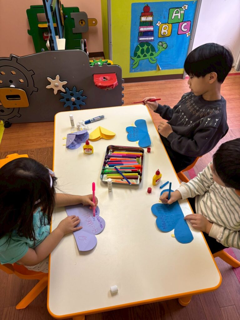 These kids made their Valentines card for their loved onesThose kids are talking about his shirt. Because its a hamburger Play timeLets sing “Fly like a butterfly” with ActionWe are enjoying circle timeThey made a flower using fussy wire.He also make a Valentine card for his parents 🙂Guest the Animals “Peekaa boooo”He make a sound of sheep “bah bahEnjoying the book about “Guesting the AnimalsCraft time for Big kidsThey enjoyed writing and making their craftCircle time
