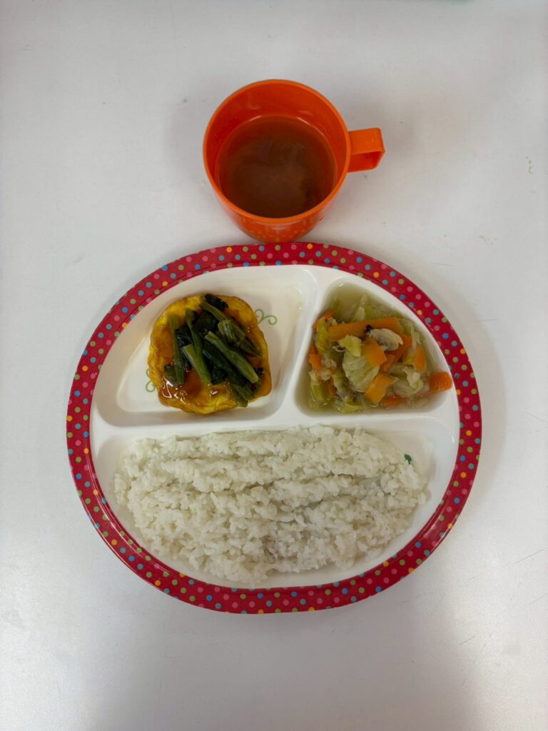 甘酢かにたま,あさりとキャベツのだし煮,みそ汁