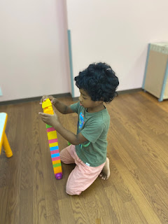 He is quietly counting his toys.